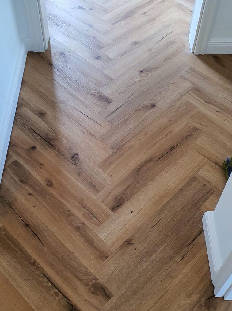 Die Verlegung erfolgte mit höchster Präzision, wobei darauf geachtet wurde, dass die einzelnen Vinylplanken nahtlos miteinander verbunden wurden. Dies sorgt nicht nur für ein ästhetisch ansprechendes Erscheinungsbild, sondern auch für eine stabile und haltbare Verbindung.